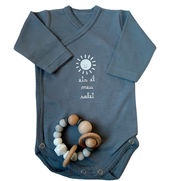 Body para bebé de algodón 100%. Body cruzado por delante de mangas largas. Disponible en castellano o en catalán.