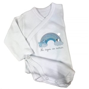 Save up to50%Save up to 8,00€Only8,00€16,00€El precio original era: 16,00€.8,00€El precio actual es: 8,00€.Body para bebé de algodón 100% No dejes de soñar. Body cruzado por delante de mangas largas. El arco iris lo puedes encontrar en Rosa, Celeste y gris. Puedes seleccionar la frase en Castellano o Catalán. Disponible en Talla Prematuro, T0,T1,T3 y T6 meses.
